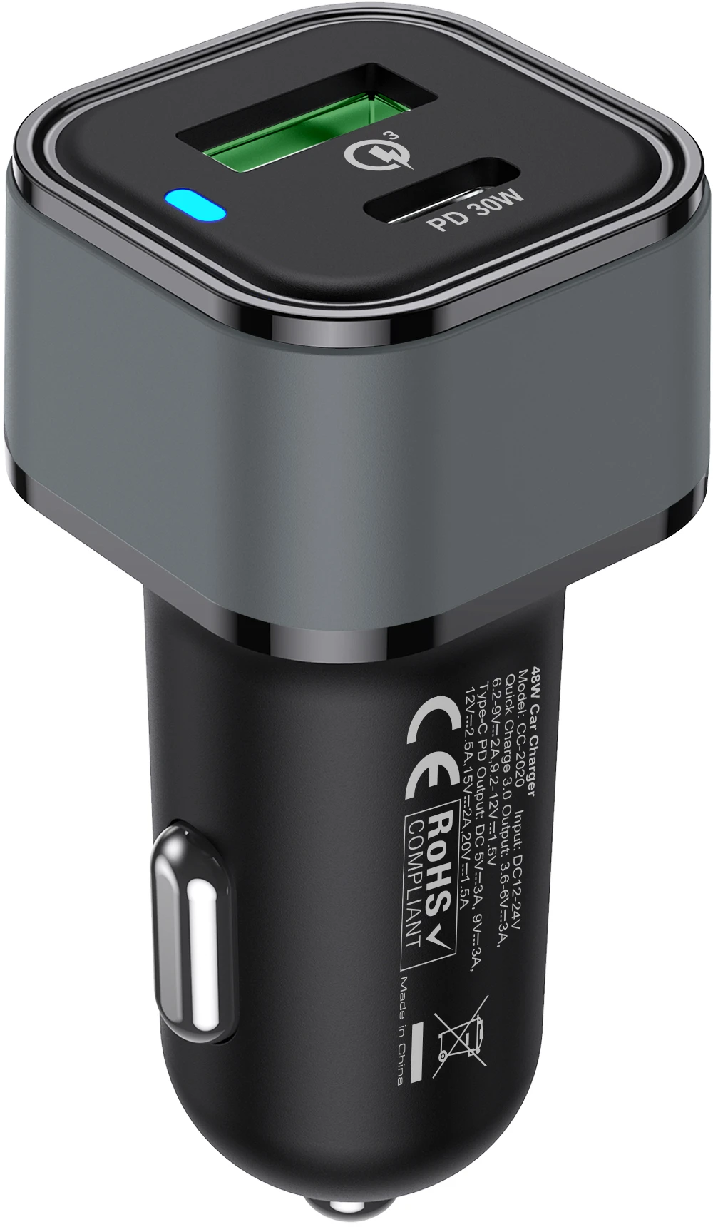 Nevox USB-C PD 30W + QC3.0 Kfz Ladegerät total 48Watt Schwarz