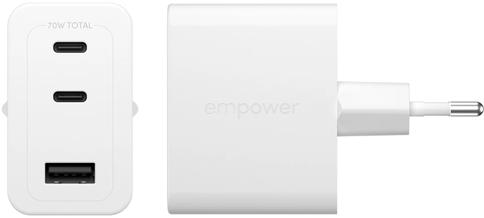 PanzerGlass empower Turbo 70W Multiple Ladegarät inkl. 2 x USB-C + USB-A EU Anschluss Silber Weiss